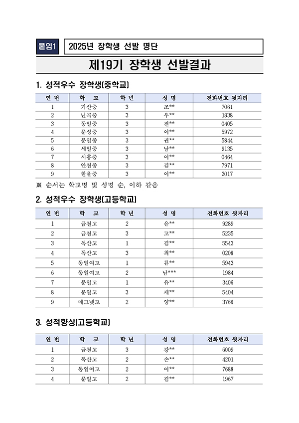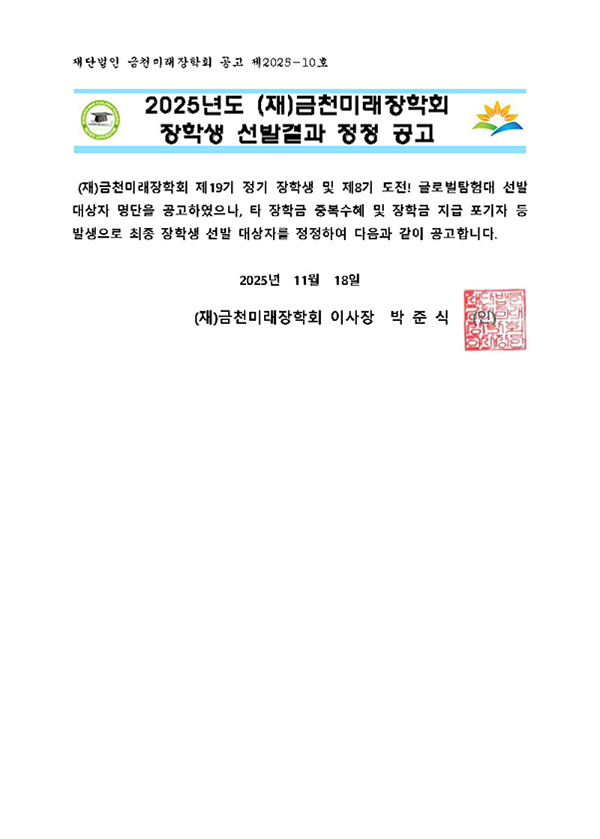 2025년도 (재)금처미래장학회 장학생 선발결과 정정 공고