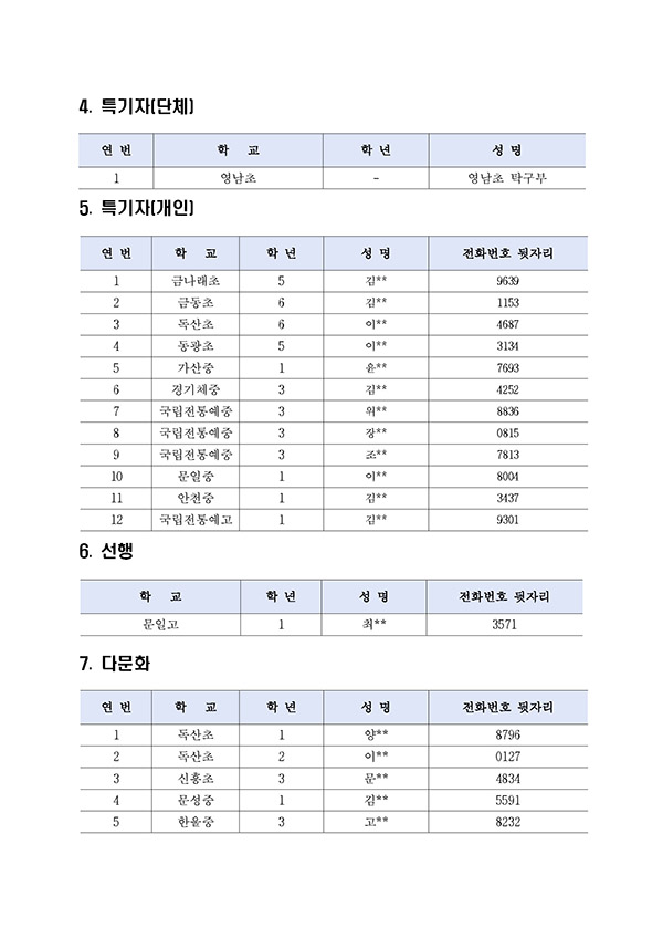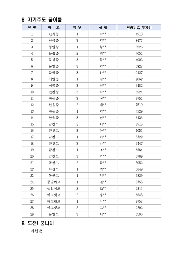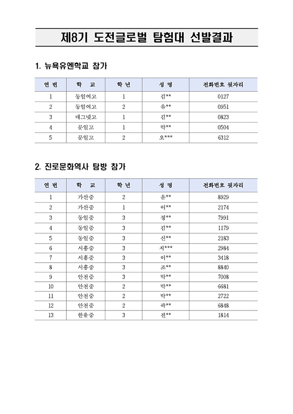 11-18(재)금천미래장학회 제19기 정기 장학생 및 제8기 도전! 글로벌탐험대 선발대상자 명단을 공고하였으나, 타 장학금 중복수혜 및 장학금 지급 포기자 등 발생으로 최종 장학생 선발 대상자를 정정하여 다음과 같이 공고합니다.